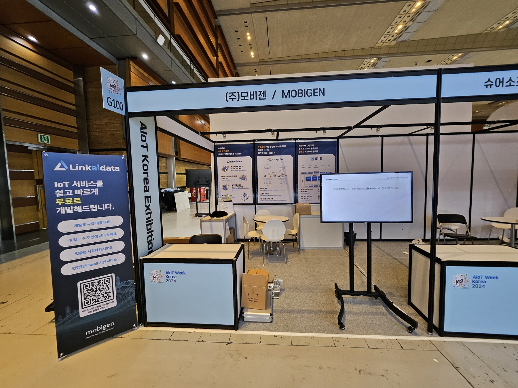 부스는 많은 참관객들로 북적였으며, 다양한 정보와 자료를 제공하는 활기찬 분위기였습니다. 부스에는 3가지 제품 서비스에 대한 영상 디스플레이와 월 패널로 소개했습니다.